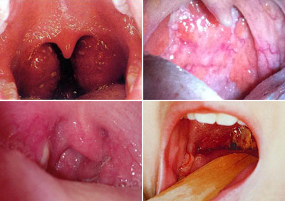 先觉得咽部干燥不适,灼热咽痛,而且逐渐加重,甚至出现吞咽不便,继而咽部充血、扁桃体肿大。倘若炎症向下蔓延,可并发喉炎、气管炎,出现声音嘶哑、咳嗽、全身不适、头痛、不同程度的发热等症状,用压舌板压住舌根,可见咽部粘膜声带呈弥漫性充血、水肿,舌根、咽后壁淋巴滤泡增生,有的患者颌下淋巴结肿大并有压痛。