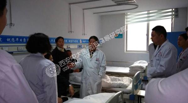 点咨询医生 近日,在西安中大耳鼻喉医院来长荣教授的带领下,对医院各科室病房进行巡查。据悉,西安中大耳鼻喉医院每周都会进行医生查房,旨在更好的为患者服务,促进医患之间的关系更加密切。