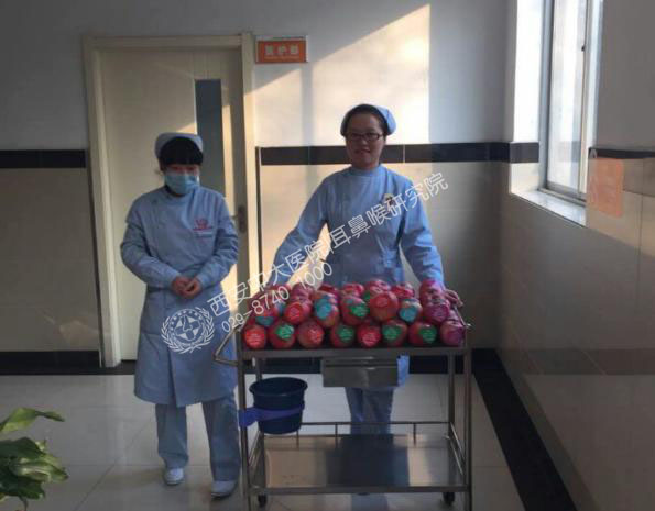 点咨询医生 一个苹果,一点心意,一份祝福,12月24日西安中大耳鼻喉医院开始了一个不平凡的平安夜旅程: