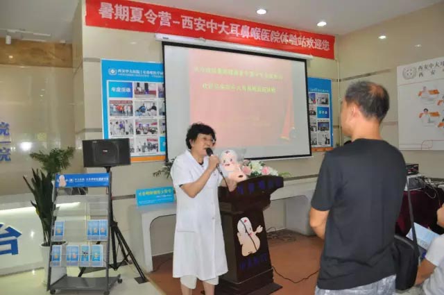 点咨询医生 由《华商报》主办的“暑期健康夏令营活动——暨青少年耳鼻咽喉健康体检”于8月22日走进了西安中大耳鼻喉医院,此次活动旨在加强青少年对耳鼻喉疾病的认识,进一步提高青少年身体素质。
