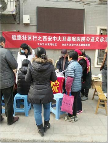 1月7日一大早,在白鹭湾社区龙渠湾37号门前,西安中大耳鼻喉医院义诊医生团的医护人员们刚摆好医疗器械就被闻讯赶来的居民们围得水泄不通,现场气氛一下子热烈起来。